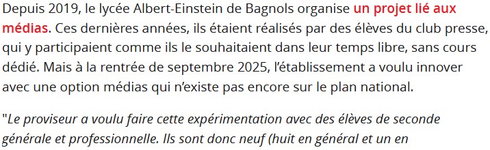 Le lycée Albert-Einstein de Bagnols-sur-Cèze a ouvert une option médias cette année avec neuf élèves de seconde. Les lycéens réalisent un reportage vidéo sur l’égalité hommes-femmes dans le sport, qu’ils enverront à deux concours nationaux.